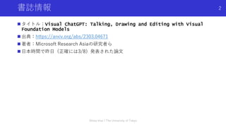【DL輪読会】Visual ChatGPT: Talking, Drawing and Editing with Visual Foundation Models