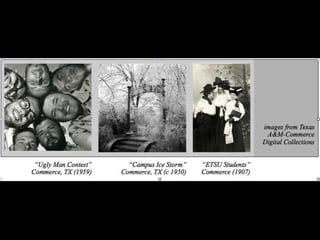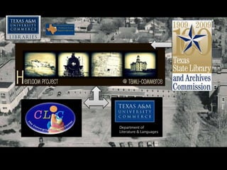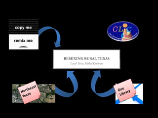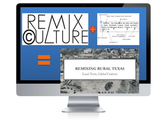 This document discusses a project to develop a prototype that facilitates remixing various types of digitized primary sources. The prototype will be used to create web presentations on rhetorical constructions of race and race relations in rural Texas during the Civil Rights Movement. Key sources that will be remixed include materials about John Carlos' time at East Texas State University in the 1960s and Richard Wright's book "12 Million Black Voices" from 1941. The project aims to examine how creativity and innovation build upon the past within the constraints imposed by controls over the past. A project team at Texas A&M University-Commerce will lead the development of the prototype.