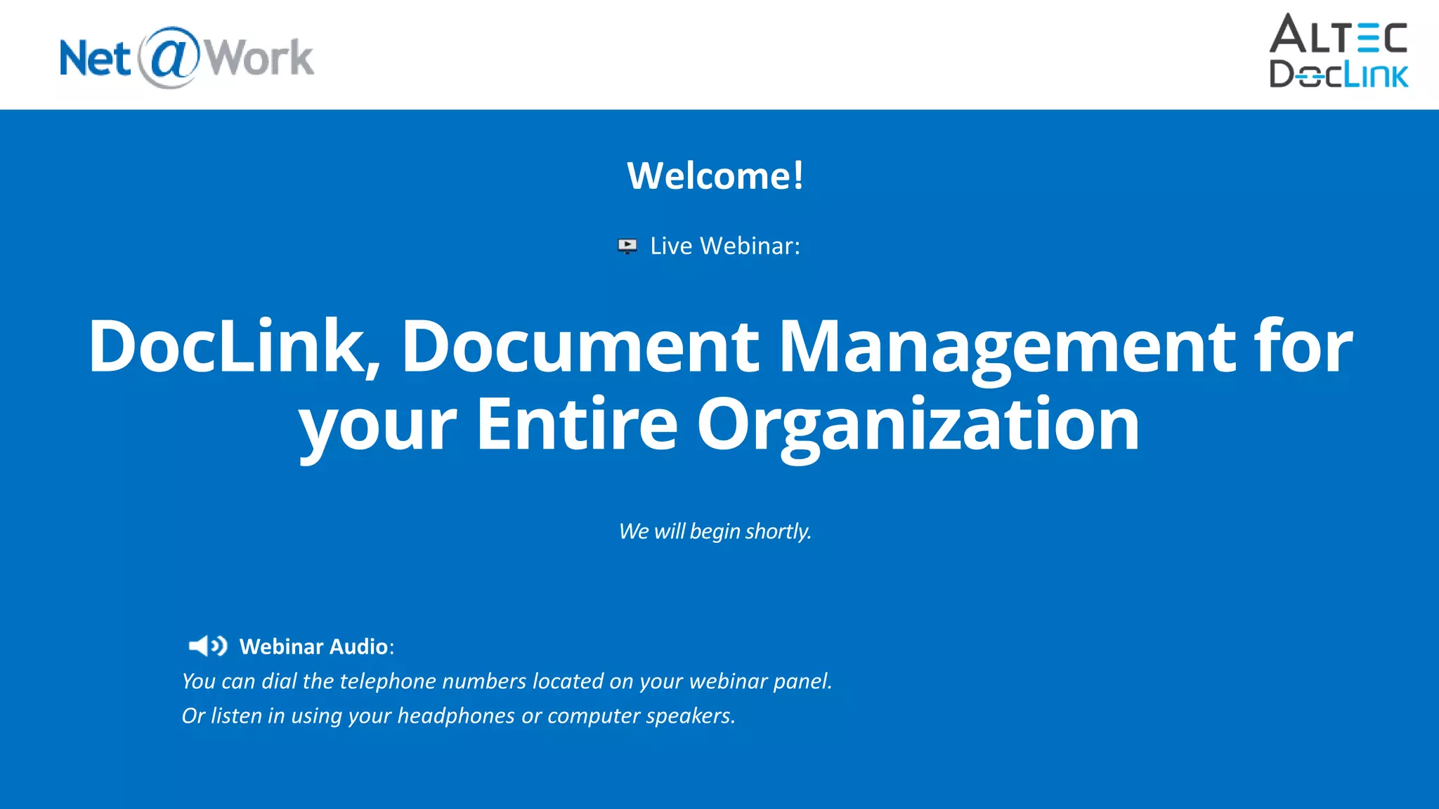The webinar discussed how organizations can go digital and improve business processes using DocLink's document management system. DocLink allows users to capture, search, retrieve, and automate workflows for documents. It was demonstrated how DocLink can streamline accounts payable, improve visibility for accounting managers, automate invoice delivery in accounts receivable, and expand into human resources applications like onboarding and time off requests. Attendees were invited to ask questions and provided with contact information for next steps.
