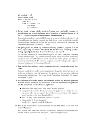 instance learning als bij clustering. (1 punt)