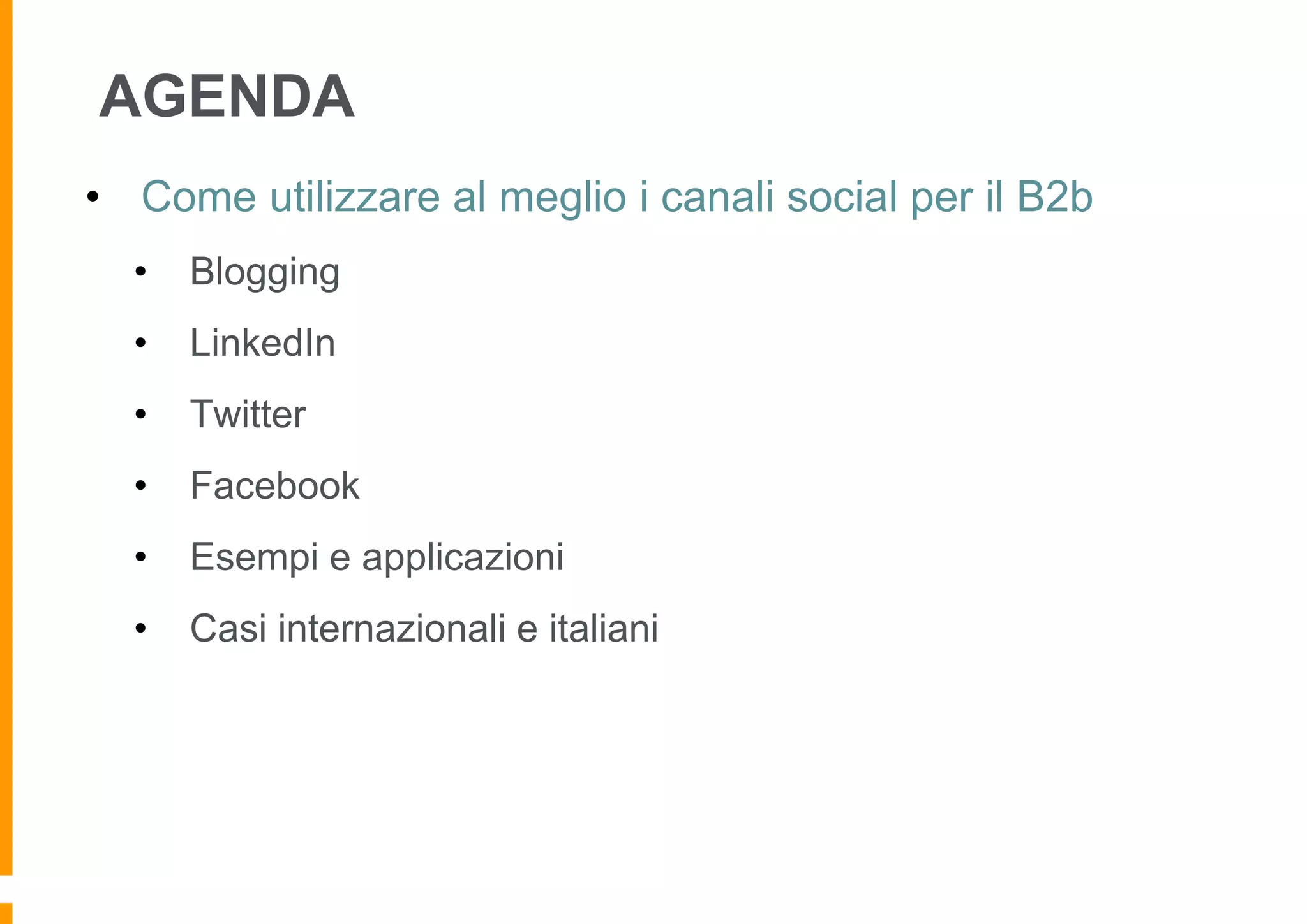 Il documento tratta l'importanza del marketing B2B tramite social media, focalizzandosi su come utilizzare piattaforme come LinkedIn, Twitter e Facebook per generare lead qualificati. Vengono forniti esempi pratici, come il caso di Lynden Logistics, e strategie per sfruttare al meglio il blogging e il content marketing. Inoltre, il documento discute le metriche da considerare, le migliori pratiche per la creazione di profili aziendali e i benefici derivanti dall'interazione sui social media.