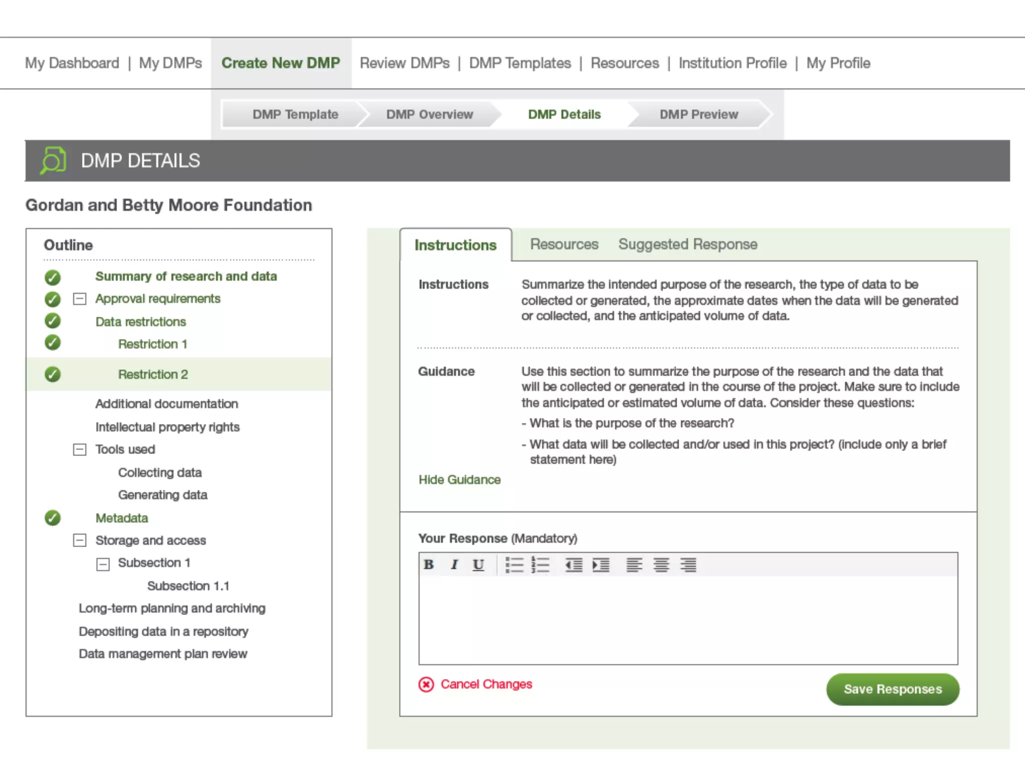 The document discusses the importance of Data Management Plans (DMPs) in research, highlighting their role in data organization, sharing, and compliance with funding agency requirements. It outlines key components of a DMP, including data types, metadata standards, access policies, preservation plans, and budget considerations. Additionally, it mentions tools like DMPTool that assist researchers in developing effective DMPs and emphasizes continuous improvement in data stewardship practices.