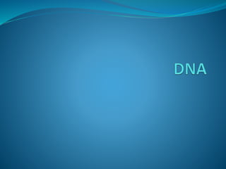 DNA contains the genetic code for all organisms in the form of a twisted ladder structure with sugar-phosphate backbones and nitrogen base rungs that always pair together as A=T and C=G. In 1953, Rosalind Franklin discovered the spiral structure of DNA and James Watson and Francis Crick used her work to build the first DNA molecular model.