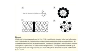 DNA extraction is a method to purify DNA from a sample by separating it from other cellular components using physical and chemical methods. It involves disrupting cell walls and membranes to release DNA, then precipitating the DNA and removing contaminants like proteins, lipids, and RNA. Common extraction methods use chemicals like phenol, chloroform, and isopropanol to separate DNA, which is then analyzed on a gel for quality and yield assessment or used in applications like forensics, ancestry tracking, medical testing, and genetic engineering.