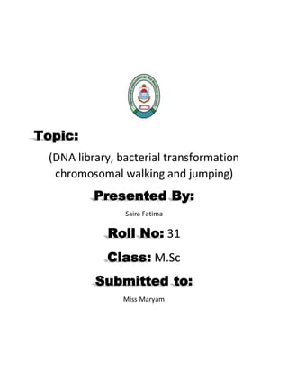 3. Chromosomal jumping and walking are techniques used in genome mapping and sequencing. Jumping allows bypassing repetitive sequences, while walking maps contiguous overlapping fragments to identify adjacent sequences.