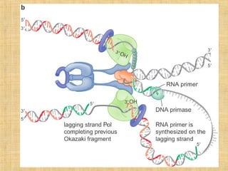 3. Replication enzymes include helicases, primases, DNA polymerases, topoisomerases, ligases and sliding clamps that work together in the replisome complex.
