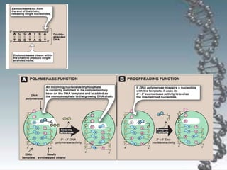 - DNA damage can occur from chemicals, radiation, and replication errors but cells have multiple repair mechanisms like base excision repair, nucleotide excision repair, and