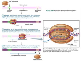 The document discusses the key features and interrelationships between DNA, RNA, and proteins. It covers the central dogma where DNA is transcribed into RNA which is then translated into protein. DNA stores genetic information and its structure was discovered by Watson and Crick. RNA acts as an intermediary between DNA and proteins, and there are three main types - mRNA, tRNA, and rRNA. Proteins are made of amino acids and have complex 3D structures that determine their function. The central dogma flow of genetic information from DNA to RNA to protein is described.