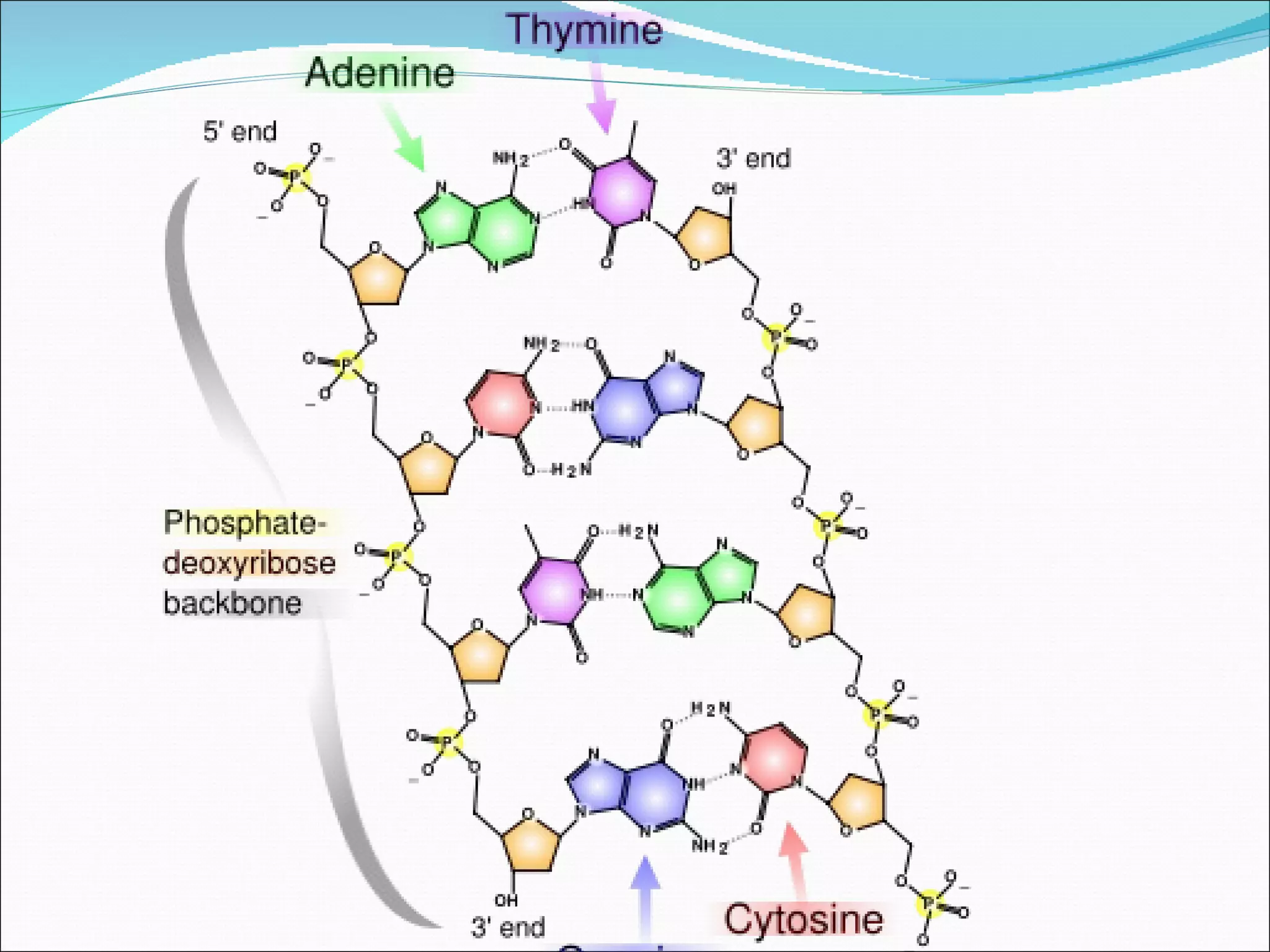 1. DNA is made up of deoxyribose, phosphate groups, and four nitrogenous bases (adenine, guanine, cytosine, thymine).