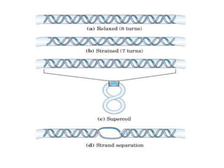 DNA supercoiling occurs when the DNA double helix further coils upon itself, introducing structural strain. Supercoiling is generally manifested as underwinding of the DNA double helix in closed circular DNA molecules, resulting in fewer helical turns than expected. This underwinding can be quantified based on the linking number, which represents the number of times one strand pierces the other, and the superhelical density, which expresses the change in linking number relative to relaxed DNA. Cellular DNA typically has a superhelical density of -0.05 to -0.07, indicating 5-7% underwinding that introduces negative supercoiling.