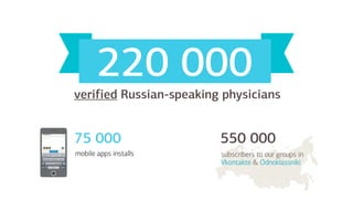 - Their social networks have over 220,000 verified Russian-speaking physicians.