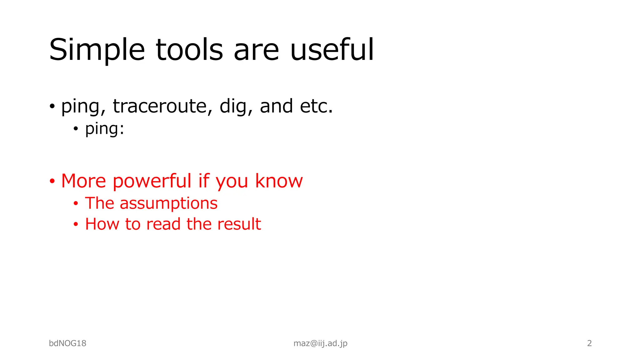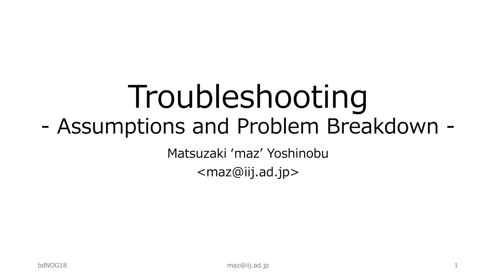 The document outlines troubleshooting techniques for DNS issues, emphasizing tools like ping, traceroute, and dig. It details the process for resolving domain names and identifying potential failure causes on various server sides, including authoritative and client configurations. Recommendations for diagnosing problems include using alternative resolvers and confirming internet connectivity, with examples of specific queries provided to illustrate effective troubleshooting.