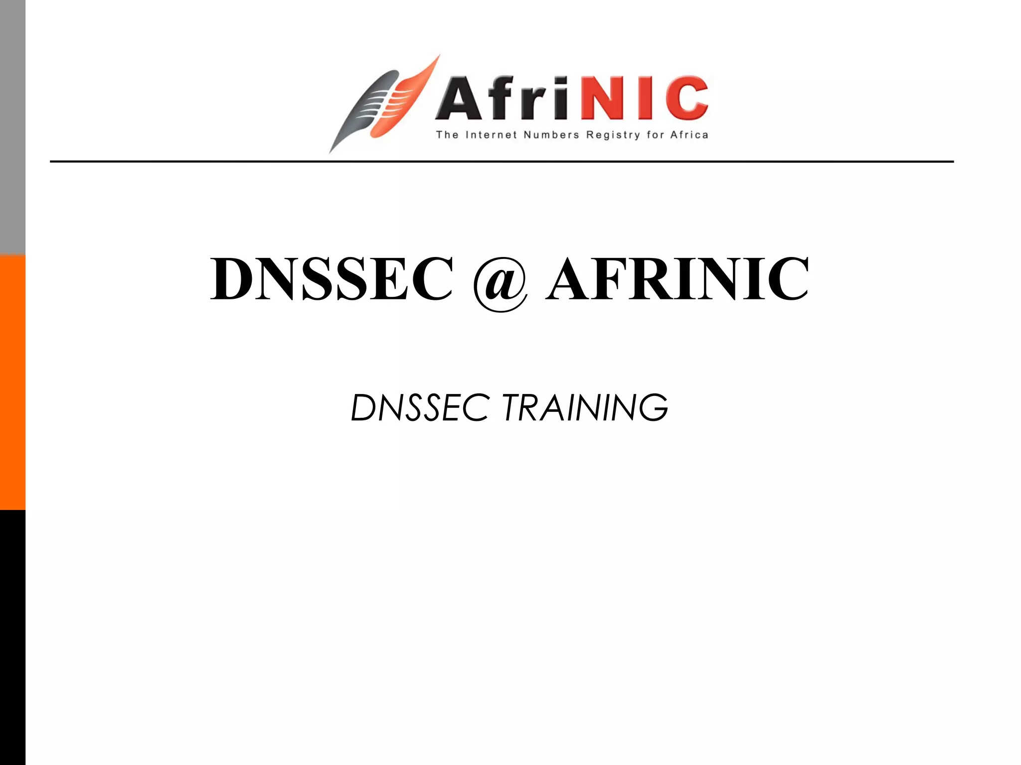 The document discusses DNSSEC at AFRINIC, including: