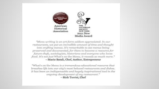 The document discusses best practices for creating and managing open cultural heritage collections, emphasizing the importance of open data accessibility, community engagement, and effective metadata management. It outlines the principles of open data, the significance of smart and exportable metadata, and the role of community contributions in enhancing collections. Additionally, it covers copyright considerations and practical strategies for fostering participatory culture in cultural institutions.