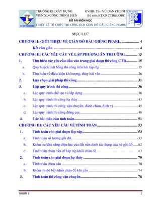 Tài liệu mô tả dự án thiết kế và thi công giàn đỡ đầu giếng Pearl, bao gồm các yêu cầu thiết kế, quy trình thi công và các tính toán kỹ thuật liên quan. Nó trình bày chi tiết về kết cấu, thiết bị thi công, cũng như các điều kiện cần thiết để thực hiện công việc trên bãi lắp ráp và trong môi trường thủy hải văn. Ngoài ra, tài liệu cũng bao gồm thông tin về lực kéo, độ bền và phương án hạ thủy cấu kiện.