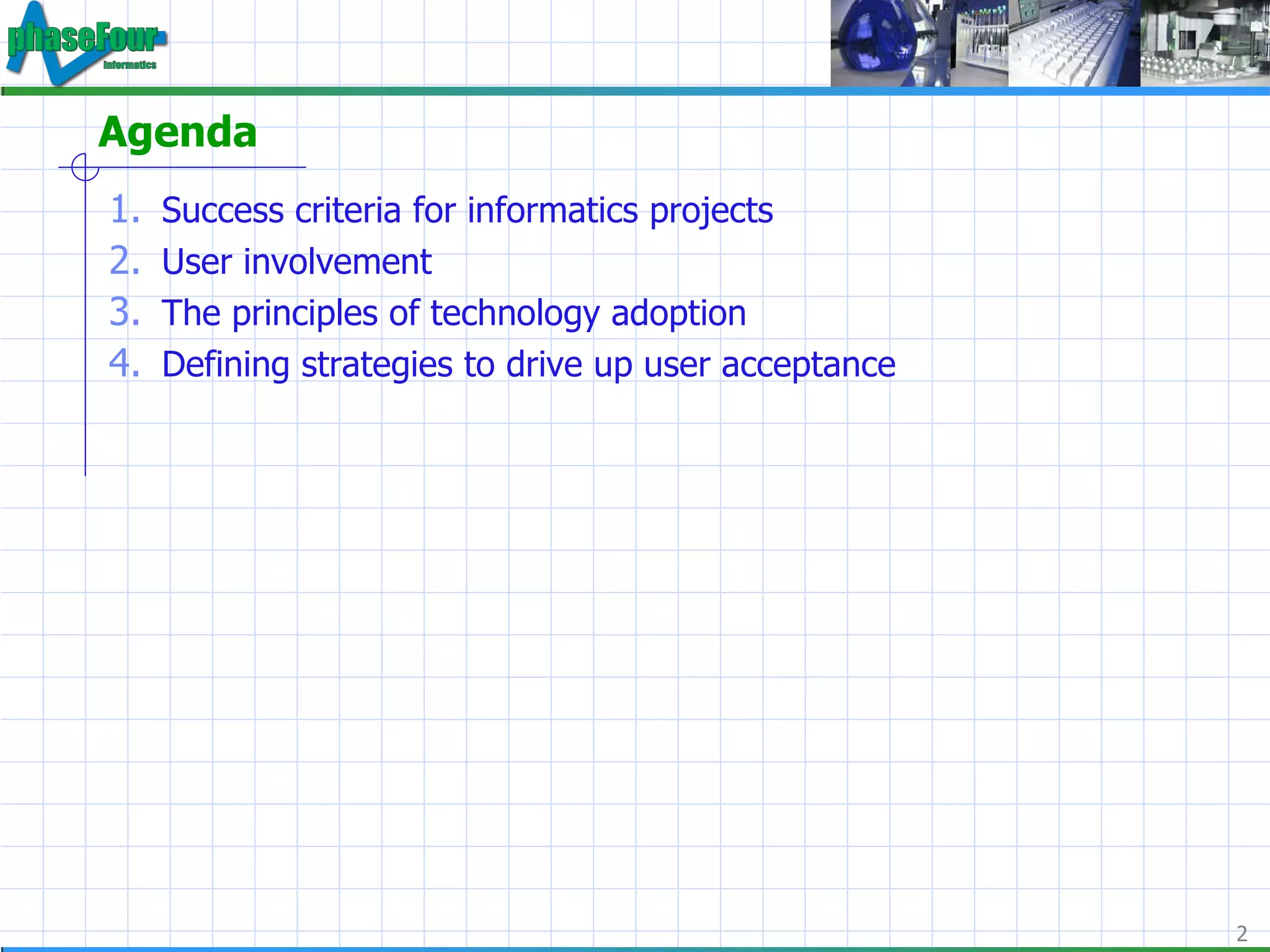 The document discusses factors for successful informatics projects and user acceptance of new technologies. It notes that short-term success is based on being on time and on budget, while long-term success depends on user acceptance. To achieve user acceptance, the summary recommends keeping close control of user requirements, maintaining user involvement throughout the project, and recognizing different types of users and their technology adoption behaviors. The relationship between IT departments and users is also examined, emphasizing the importance of alignment between their interests.