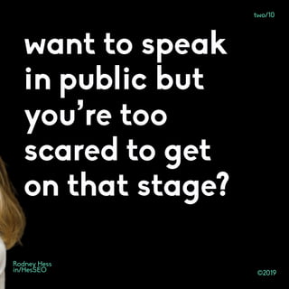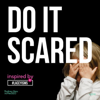 The document discusses overcoming fears of public speaking, starting a podcast, making career changes, and more. It encourages taking action even when afraid by noting that fear is just excitement masked by doubt. It concludes by advising the reader to "flip the script and do it scared."
