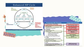 DepEd Order No. 44, s. 2015 outlines the guidelines for the Enhanced School Improvement Planning (SIP) process and the School Report Card (SRC) aimed at improving access, quality, and governance in basic education over a three-year cycle. The document emphasizes community collaboration, evidence-based strategies, and transparency in school operations while detailing the processes and skills needed for effective implementation. It highlights the importance of strategic leadership and stakeholder participation in addressing challenges and ensuring equitable educational environments for all students.