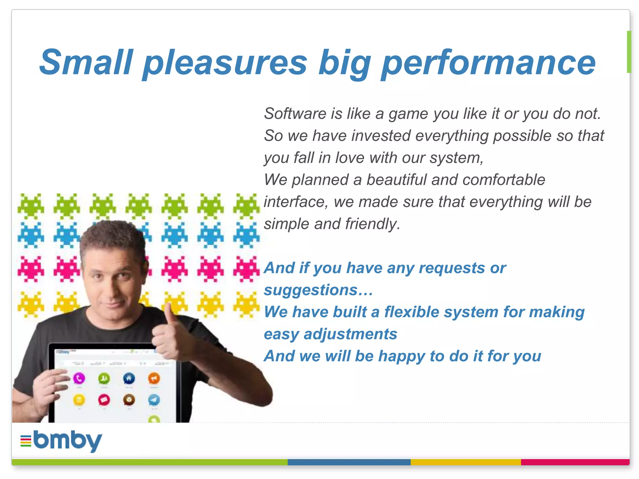 This document summarizes a sales pitch for a customer relationship management (CRM) software called BMBY. The key points are:
