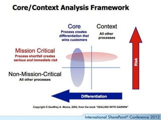 This document discusses whether an organization needs SharePoint. It begins with an introduction that outlines the agenda, which includes discussing the need for SharePoint and providing background on the business track presentation. The document then shares details about the fictional company FIZZ Energy, which was formed through a merger and appointments. It closes by thanking attendees and reiterating the agenda topics.