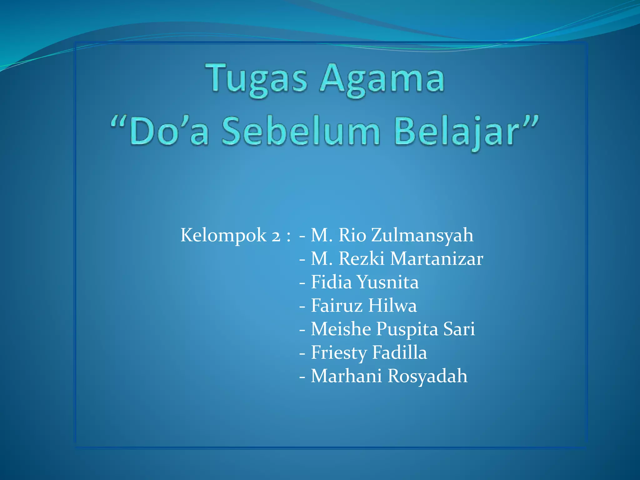 Dokumen ini berisi doa yang dipanjatkan oleh kelompok 2 yang meliputi puji-pujian kepada Allah, permohonan bimbingan, kesehatan, dan pengampunan dosa. Doa juga dilengkapi dengan harapan untuk mendapatkan ilmu yang bermanfaat selama kegiatan belajar berlangsung. Di akhir doa, terdapat permohonan untuk kesejahteraan di dunia dan akhirat serta pengakuan akan keesaan Allah.