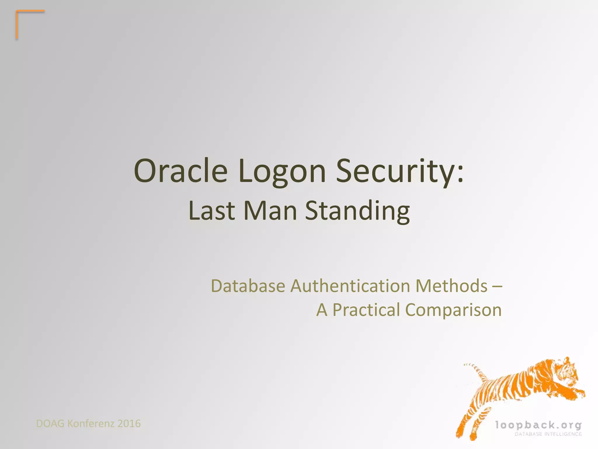 This document summarizes a presentation on database authentication methods and security. It discusses different hashing algorithms used by Oracle over time, password cracking calculations, and various authentication methods including native Oracle authentication, secure wallet stores, LDAP/OID, Kerberos integration with Active Directory, and Kerberos configuration in Oracle 12c. Key topics covered include hashing algorithms, password strength, external user security, and single sign-on authentication protocols.