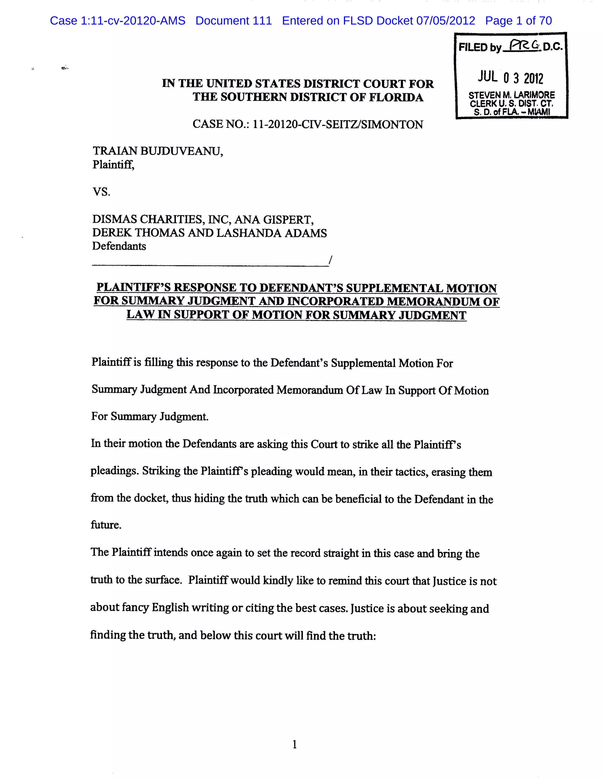 This document is the plaintiff's response to the defendant's supplemental motion for summary judgment in a civil case. It summarizes the plaintiff's allegations against the defendant halfway house for violating the terms of his home confinement by restricting his phone access. The response argues that granting summary judgment for the defendant would be inappropriate given the factual disputes between the parties. It maintains that the halfway house imposed unauthorized conditions on the plaintiff's phone use beyond what was agreed to in his home confinement agreement.