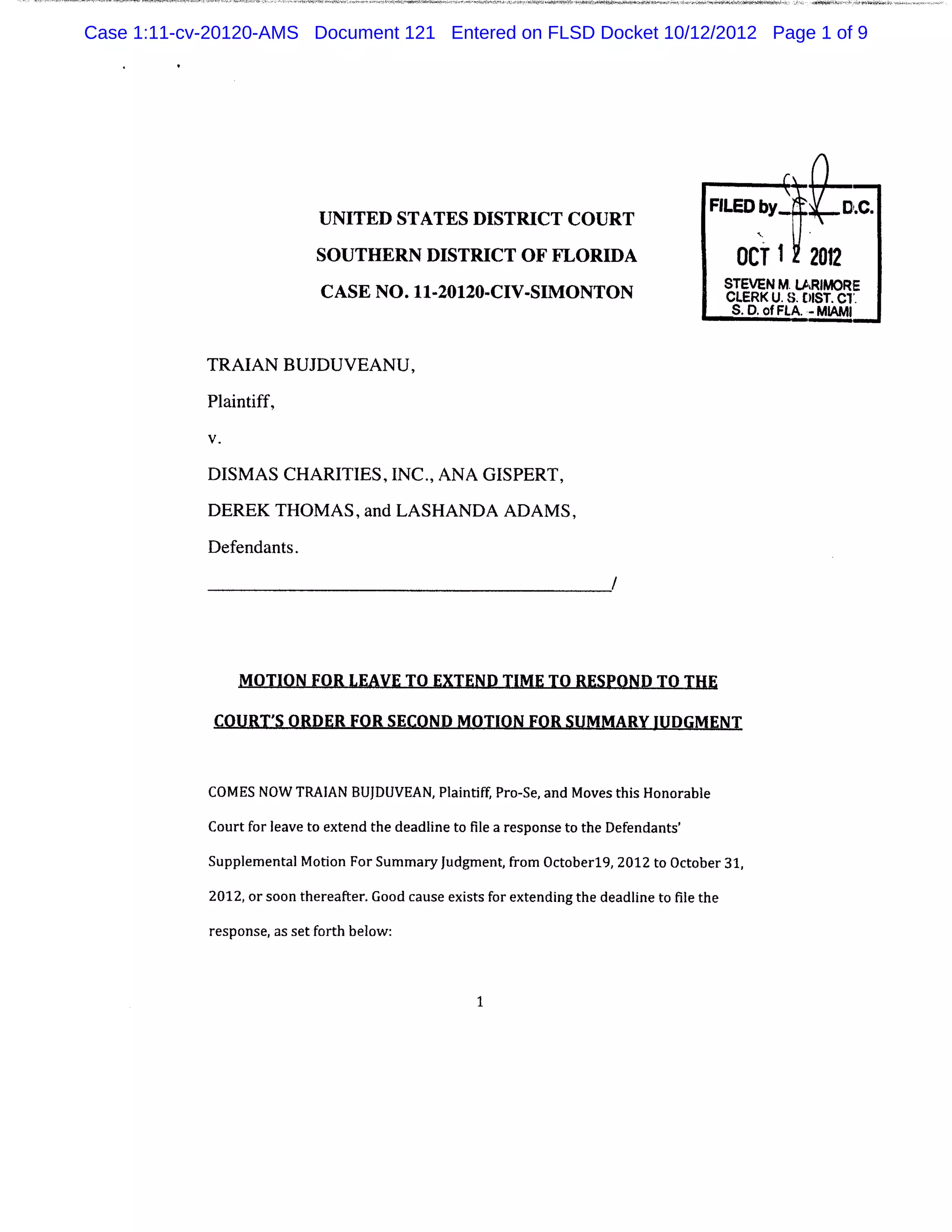 This document is a motion requesting permission to travel outside the United States to seek medical treatment. It summarizes the plaintiff's various medical conditions including Hepatitis C, liver cirrhosis, and diabetes. It details recent medical treatment received in Europe and describes a new treatment program in Ukraine. The motion requests the court's permission to travel abroad for this medical care, as the proposed treatment has not been approved by the FDA and is therefore not available in the US.