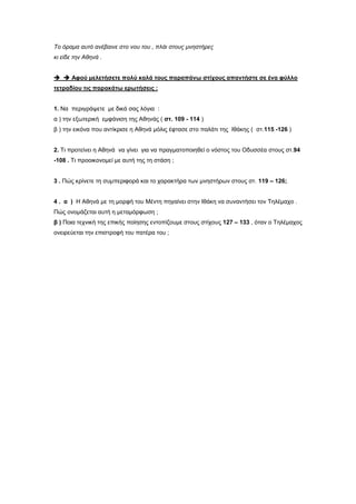 ΚΕΙΜΕΝΟ : Ραψωδίαα 94- 133 Διαβάστε προσεκτικά το κείμενο :