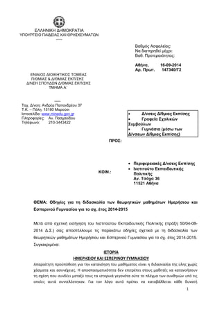 2014 Δ.Σ.) σας αποστέλλουμε τις παρακάτω οδηγίες σχετικά με τη διδασκαλία των