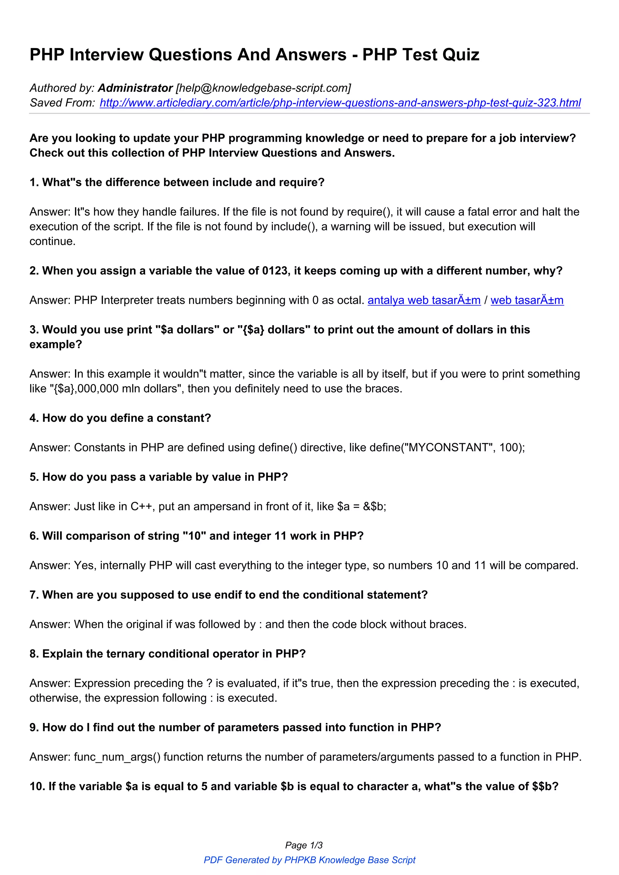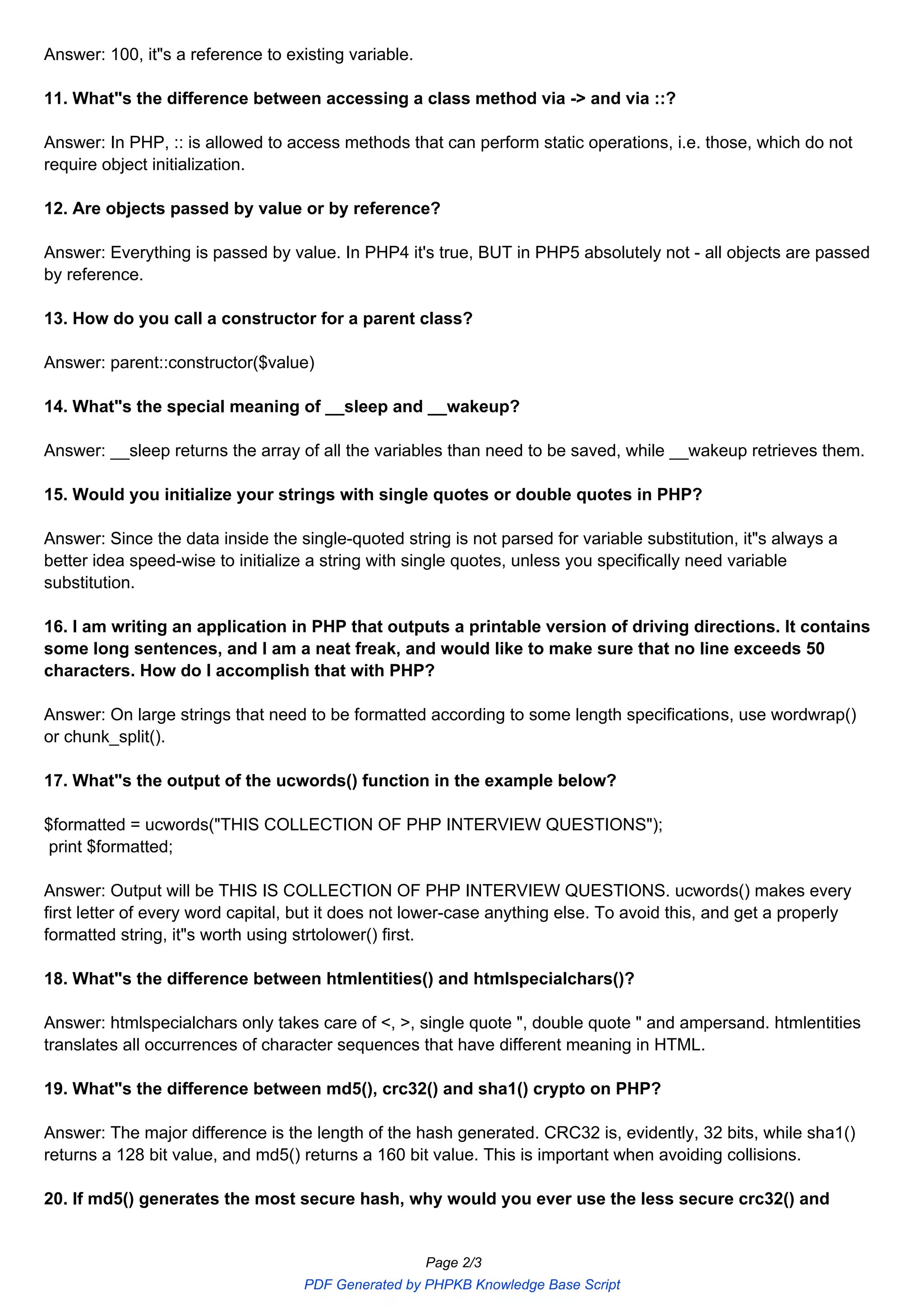 This document contains 20 questions and answers related to PHP interview questions. It covers topics like the differences between include and require, using constants, passing variables by reference, using object constructors, string formatting functions, and cryptographic hash functions like md5(), crc32(), and sha1(). The questions and answers provide explanations of PHP concepts and best practices.