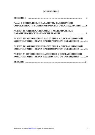 Аналитический отчет исследует представления москвичей о дистанционном общении с врачами, включая социологические параметры выборочной совокупности в 1500 респондентов. Исследование выявляет отношения населения к телемедицине, предпочтения в выборе специалистов и готовность оплачивать дистанционные консультации. Основные результаты показывают, что большинство респондентов готовы заплатить до 1000 рублей за первичную дистанционную консультацию, а терапевт является наиболее часто выбранным специалистом для дистанционного общения.