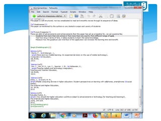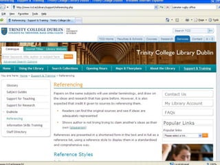 Scientific references should be documented to acknowledge the original authors and ideas, provide credibility to presented information, and allow readers to locate further information if needed. In-text citations provide attribution within the body of work, while a reference list at the end fully cites each source. Common citation styles include APA and Harvard referencing. Plagiarism involves presenting others' work as one's own and can have academic penalties, so sources must be properly cited or referenced. Bibliographic management tools help organize references and automatically generate citations.