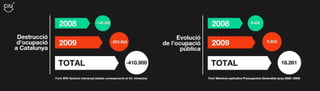 Empleats públics 2003/ 140.332 2006 / 170.409 2010 / 226.322 Increments del 32,8% respecte 2003 Increments del 61,3% respecte 2003 Cal tenir present que l’increment de la població a Catalunya ha estat del 11,5% (2003 – 2009). Font: Padró Municipal d’habitants / Idescat