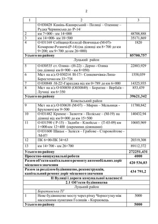Разом об'єкти капітальногоремонту автомобільнихдоріг