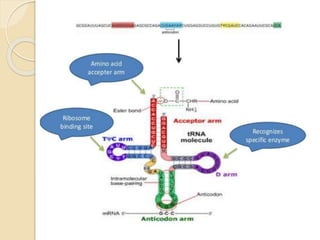 Translation in prokaryotes involves three main stages - initiation, elongation, and termination. During initiation, the small ribosomal subunit binds to mRNA and forms initiation complexes. In elongation, amino acids are linked together into a polypeptide chain as tRNAs bring successive amino acids to the ribosome. Termination occurs when a stop codon binds, causing release of the complete polypeptide. Prokaryotes regulate translation through ribosome dimerization and other factors that block initiation when nutrients are limited.