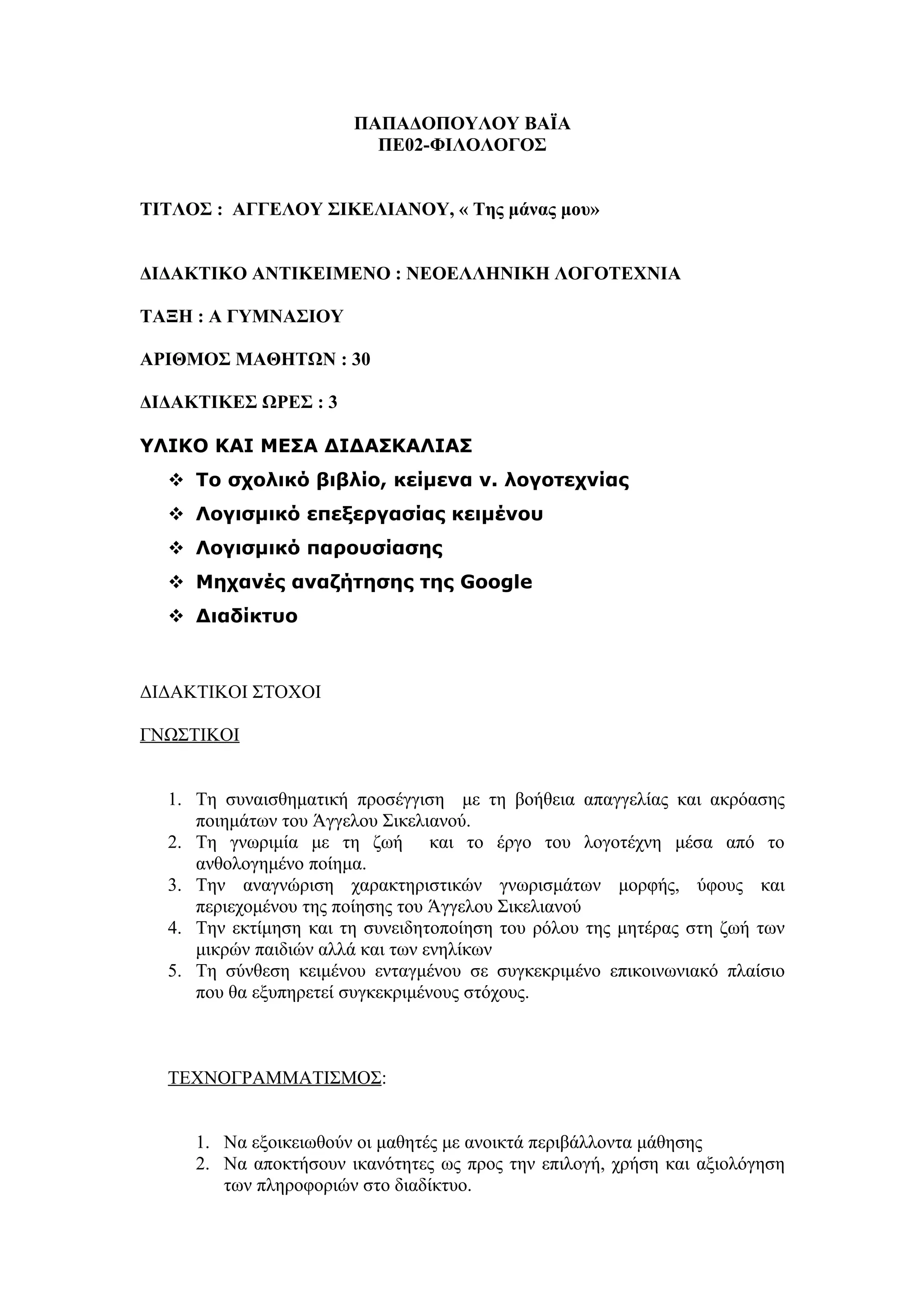 ΔΙΔΑΚΤΙΚΟ ΑΝΤΙΚΕΙΜΕΝΟ : ΝΕΟΕΛΛΗΝΙΚΗ ΛΟΓΟΤΕΧΝΙΑ
