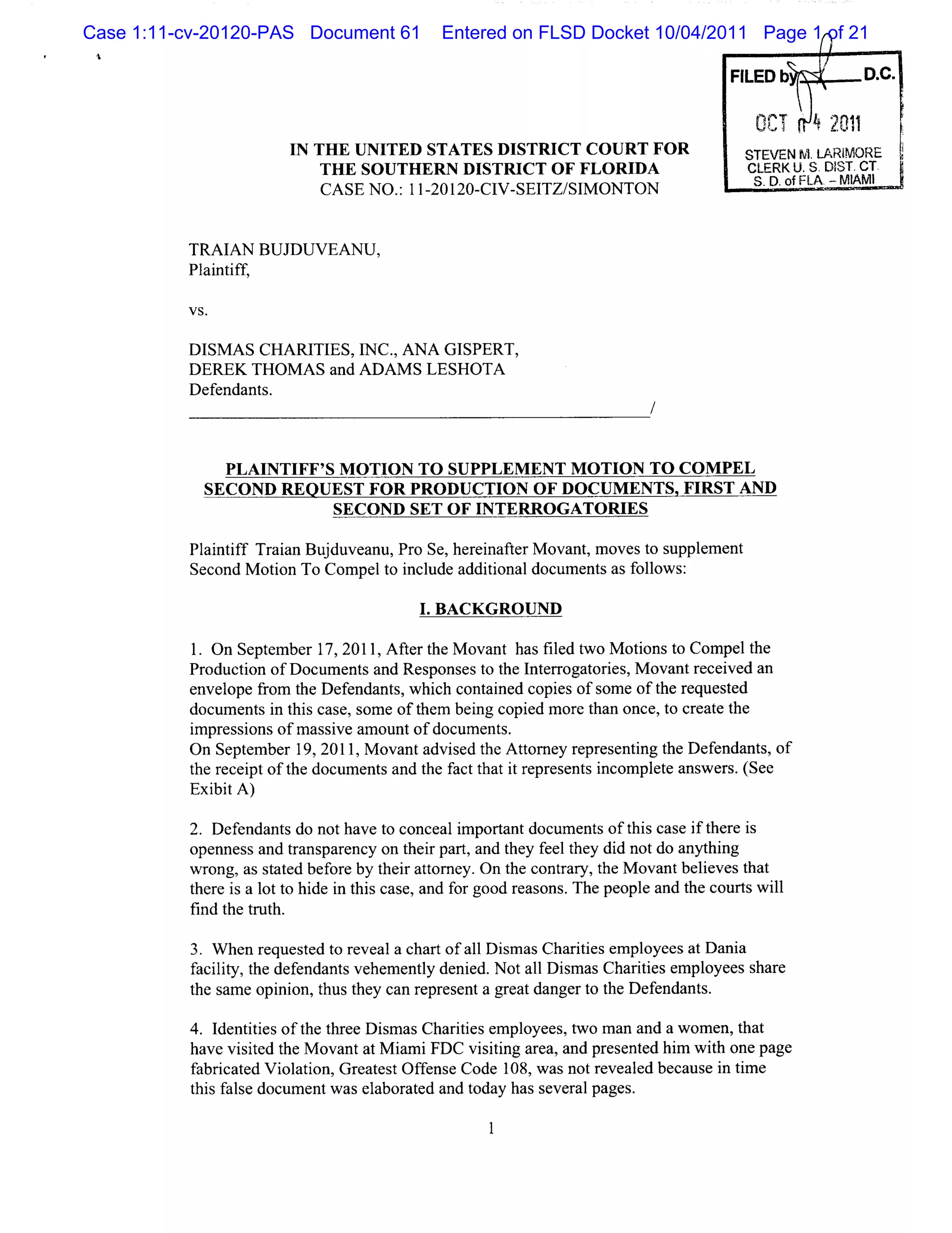 1. The plaintiff filed a motion to supplement their previous motion to compel document production from the defendants.
