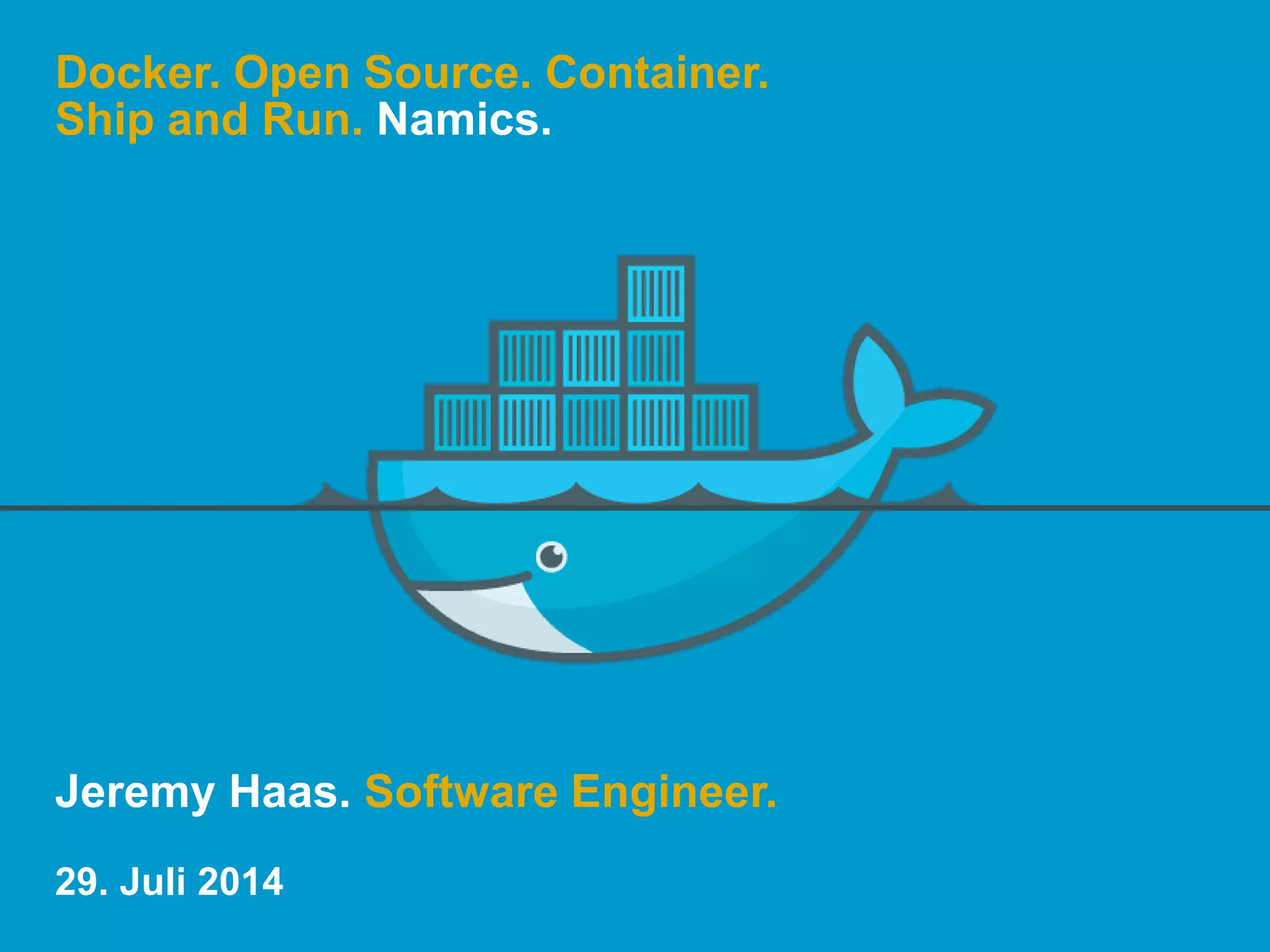 Docker is an open-source container system that allows developers to pack, ship, and run applications consistently across different environments. Since its initial release in March 2013, it has gained significant popularity and community involvement, with numerous features supporting reliable deployments and efficient resource utilization. The document also provides insights into Docker's lifecycle, image management, and available resources for users.