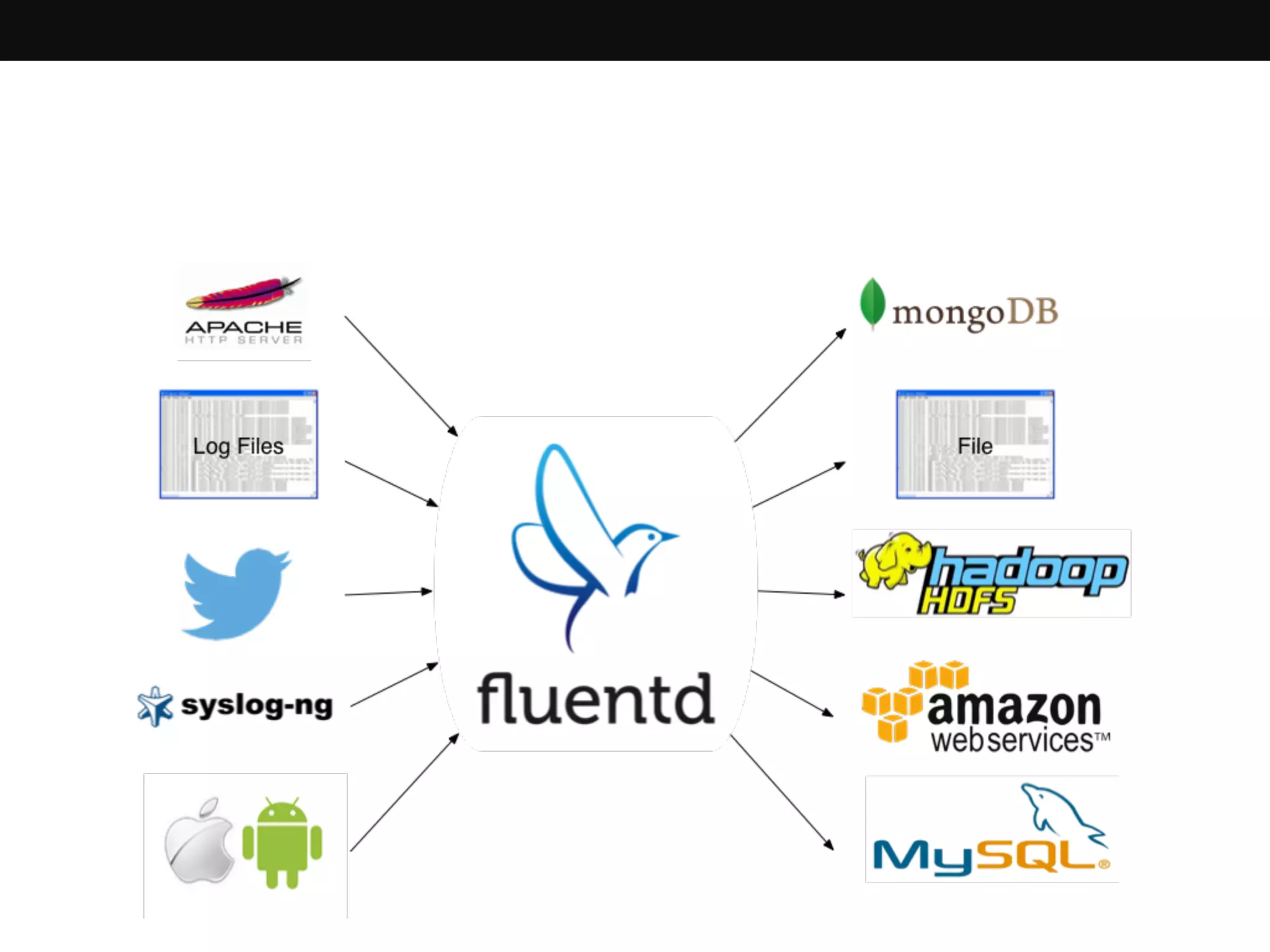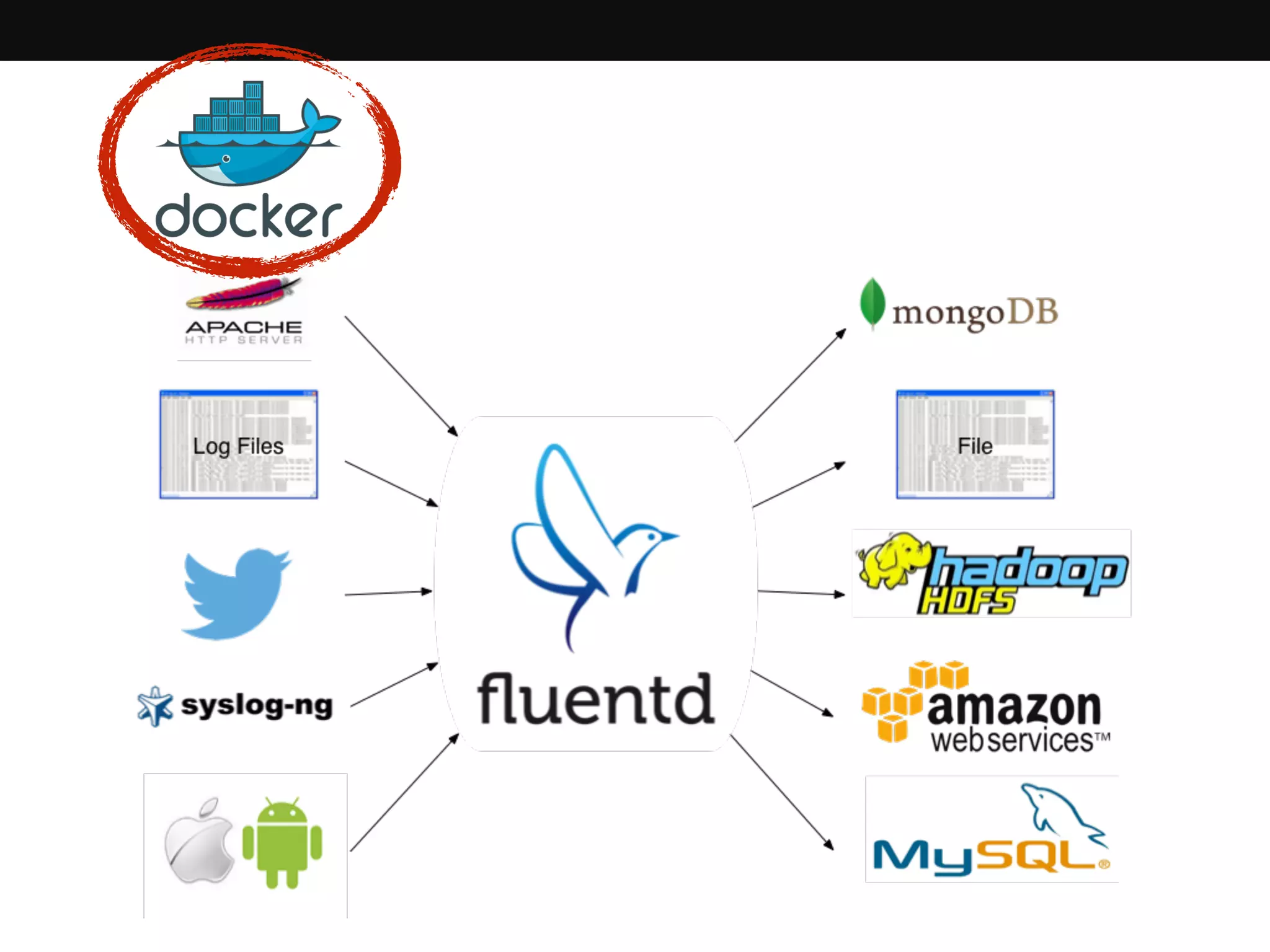 Fluentd is a data collector for unified logging that allows for structured logging, reliable forwarding, and a pluggable architecture. It is written in Ruby and uses JSON to stream data between containers. Fluentd can aggregate logs from containers in different patterns, such as a single-level or two-level aggregation. A new Docker logging driver called "fluentd" may allow containers to send logs directly to Fluentd.