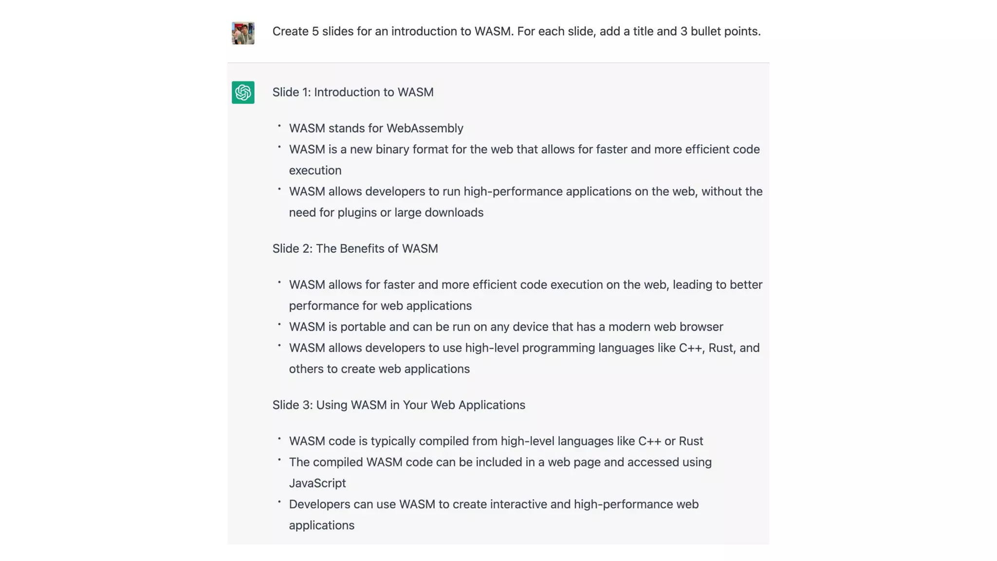WASM and Docker can work together. WASM applications can run inside containers managed by Docker and containerd. Docker Desktop now supports running WASM modules via containerd-wasm-shim. The demo showed building a Rust application into a WASM module, packaging it in a Docker image, and running it in a container on the same network as normal containers. In the future, WASM could be used to run untrusted code securely inside containers and easily install plugins in desktop applications.