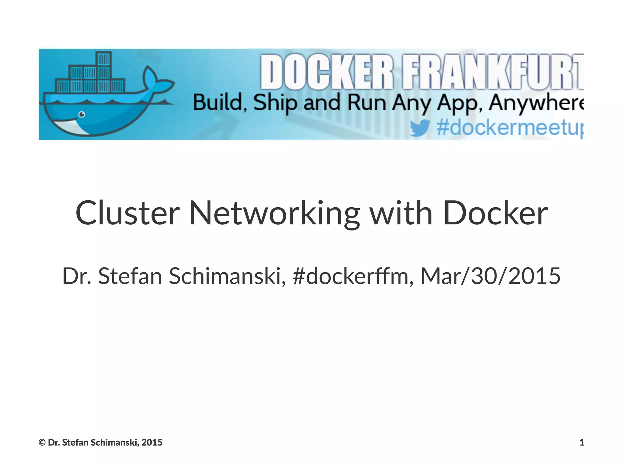 This document discusses using Docker to create a cluster networking setup with Weave. It begins by explaining the goals of automatically assigning unique IPs to containers without DHCP or an overlay network. It then describes setting up Weave to serve as the network bridge for Docker containers, so they are assigned IPs on the Weave overlay network and can communicate across hosts. The document outlines starting Weave, configuring Docker to use the Weave bridge, and ensuring containers on different hosts can connect. It concludes that this approach allows using native ports and container IPs without port management.