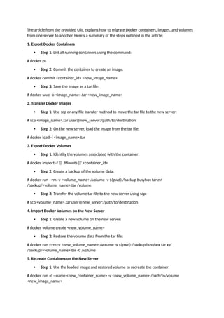 The article fromthe provided URL explains how to migrate Docker containers, images, and volumes