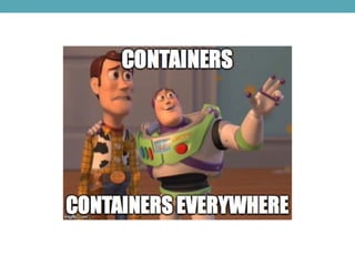 The document discusses the Docker ecosystem and how it enables simplifying infrastructure, composition, maintenance, scaling, distribution, and manufacturing of applications through the use of containers and Docker tools. It covers Docker concepts like images, Dockerfile, docker push/pull, and tools like docker-machine, docker-compose, and container orchestration platforms. The key advantages highlighted are that containers are uniform, cheap to build and distribute, and allow keeping systems simple outside while being complex inside.