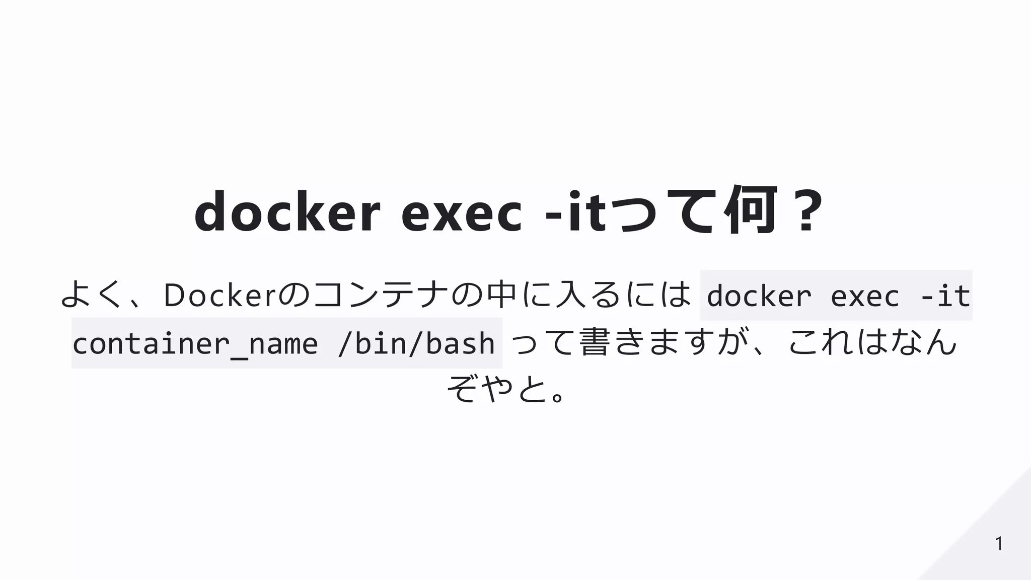 (under construction) https://web.marp.app 1/6 docker exec -itって何︖ よく、Dockerのコンテナの中に⼊るには docker exec -it container_name /bin/bash って書きますが、これはなん ぞやと。 11