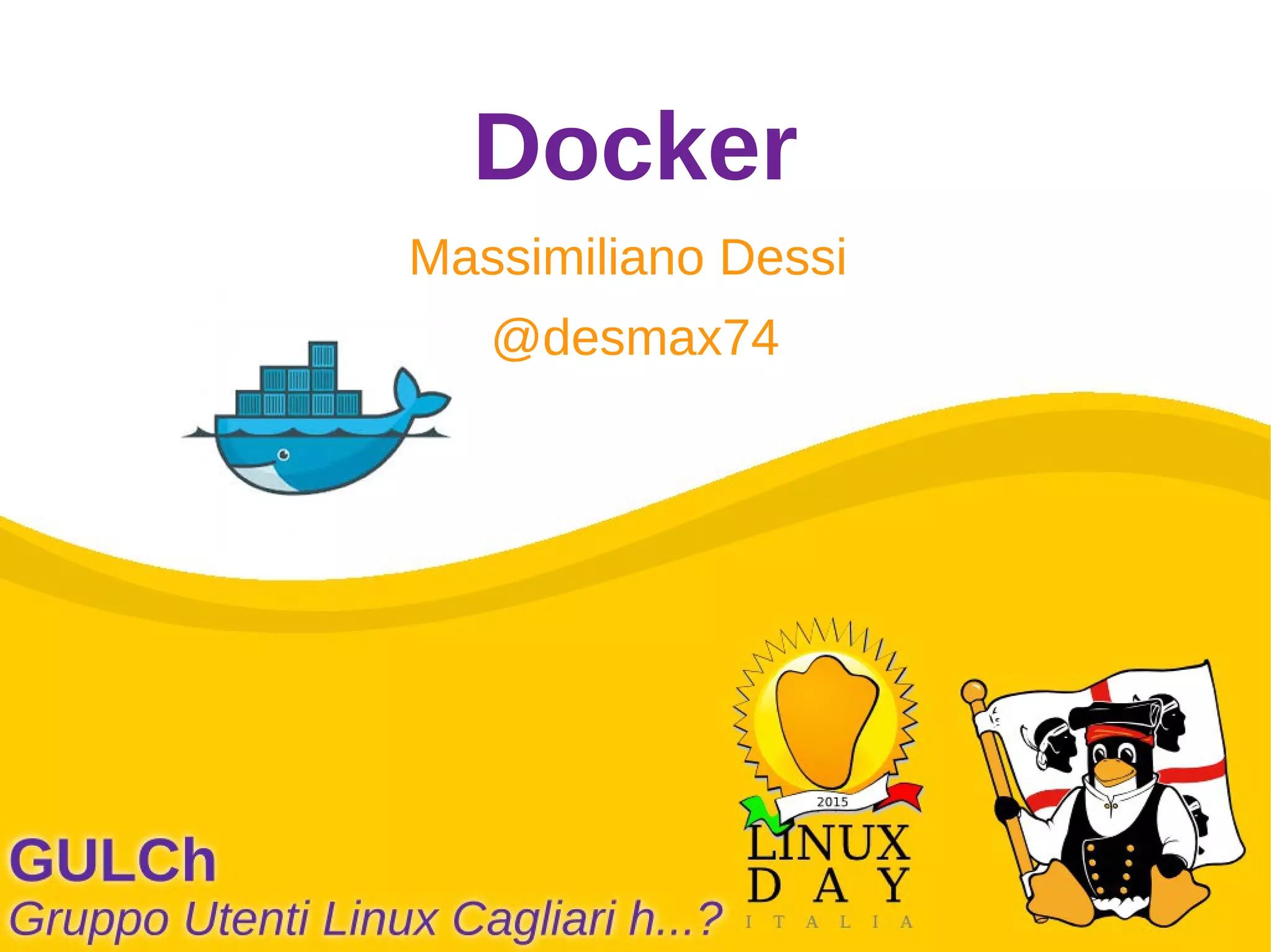 Massimiliano Dessi discusses Docker, an open-source containerization platform. Docker allows applications to be easily deployed into containers by automating the deployment process. Containers offer greater density and efficiency than virtual machines by running at the kernel level without an extra layer of abstraction. Docker uses containers, images, and a client-server architecture to package and run applications securely isolated on the host operating system with their own filesystem, CPU, memory, and other resources.