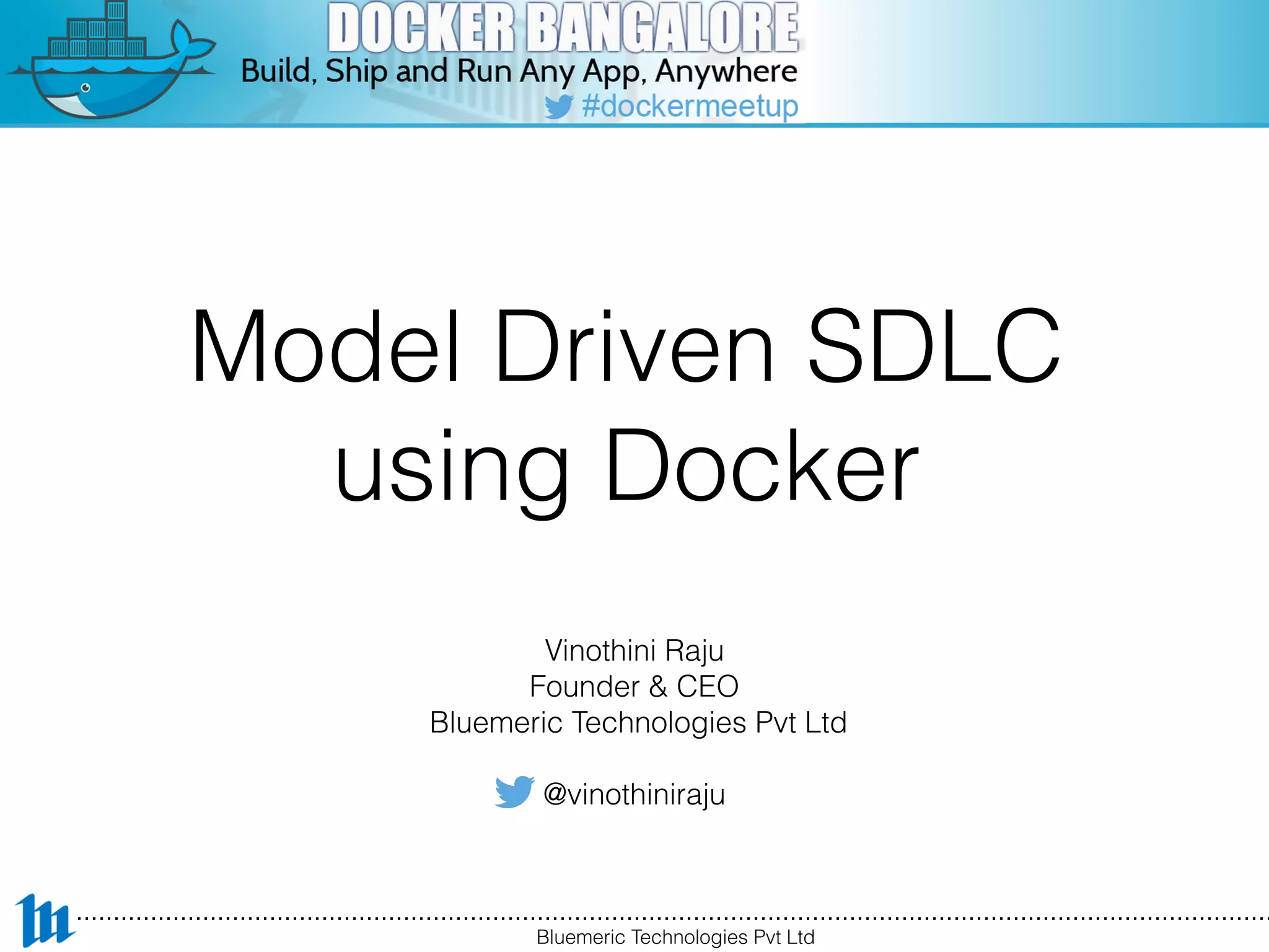 The document discusses model driven software development lifecycle (SDLC) using Docker. It describes using models for requirements, design, testing, and composition. Models are used to define services, dependencies, build processes and deployment configuration. The SDLC can be implemented from the models using forward or reverse engineering to generate Dockerfiles, images and docker-compose files to build, test and deploy applications as containers.