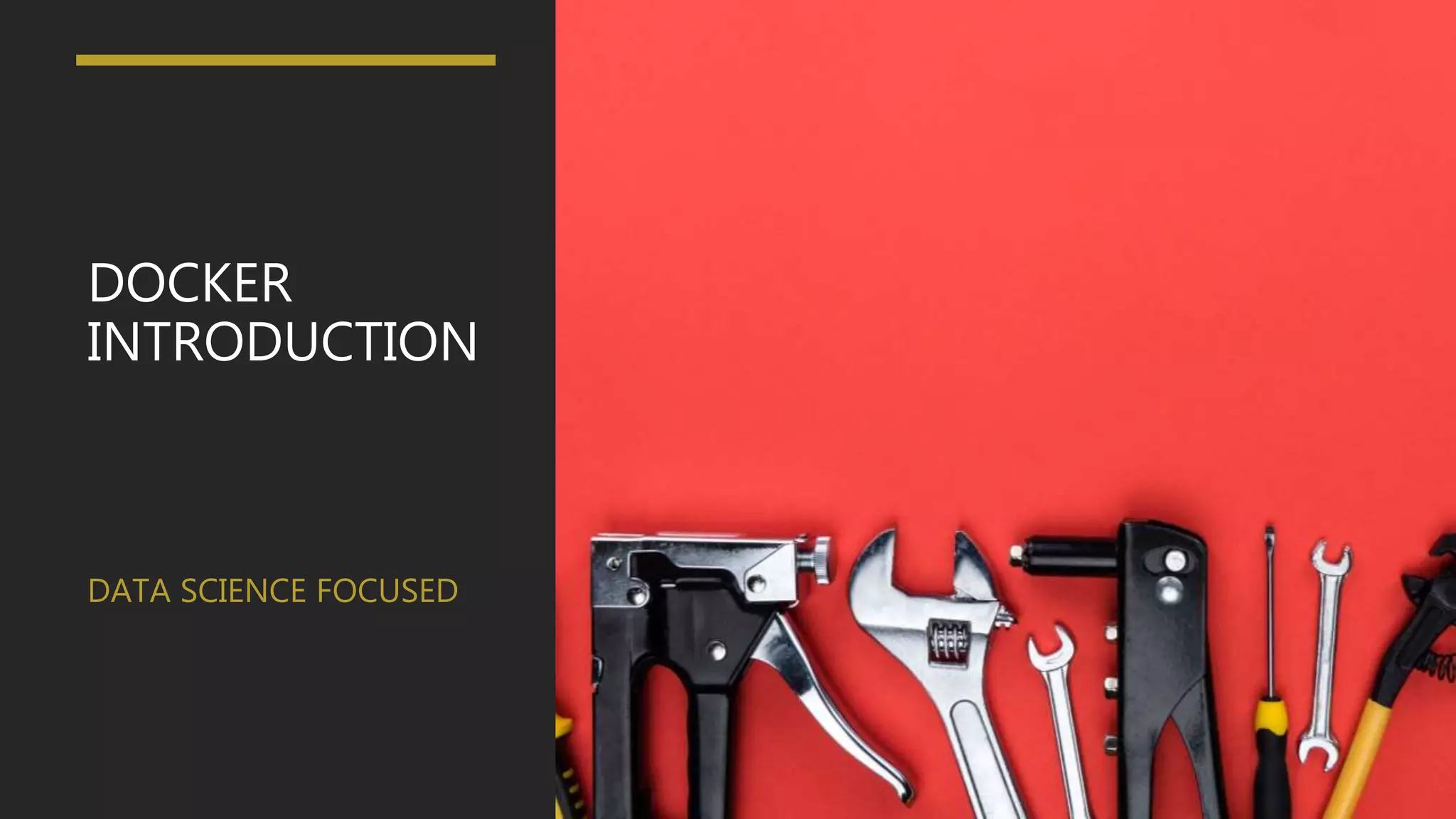 This document provides an overview of Docker and containers for data science. It begins with definitions of containers and discusses the history and benefits of containers. It then explains how Docker containers work using namespaces, cgroups, and union file systems. Key Docker concepts are introduced like Dockerfiles, images, containers, and the Docker architecture. Practical examples are given for building simple machine learning models and databases in containers. Advanced topics covered include Docker Compose, DevOps workflows, continuous delivery, and Kubernetes. The document is intended to provide data scientists with an introduction to using Docker for their work.
