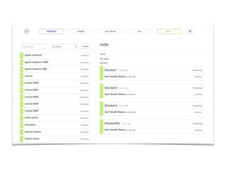 This document outlines an agenda for a Docker workshop on orchestrating Docker containers. It discusses various tools in the container ecosystem including Rancher, Mesos, Marathon, service discovery with Consul and Registrator, monitoring with Prometheus and Grafana, and continuous integration/deployment with Jenkins. Mesos is presented as a way to share resources across frameworks like Marathon. Consul and Registrator enable service discovery so applications can be accessed regardless of where they run. Prometheus and Grafana provide monitoring. The workshop emphasizes combining these tools - Docker, Mesos, Marathon, Rancher, Consul, Registrator, Consul Template, cAdvisor, Prometheus, Grafana, and Jenkins - for a complete container management solution.