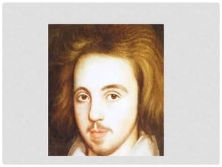 This document provides background information on Christopher Marlowe and his play "The Tragical History of the Life and Death of Doctor Faustus." It introduces Marlowe and when he was born, died, attended school, and earned his degrees. It then discusses the play, noting it was performed in 1588 and published in 1604. The rest of the document lists the characters that appear in the play, including Faustus, Mephostophilis, angels, devils, and various minor characters.